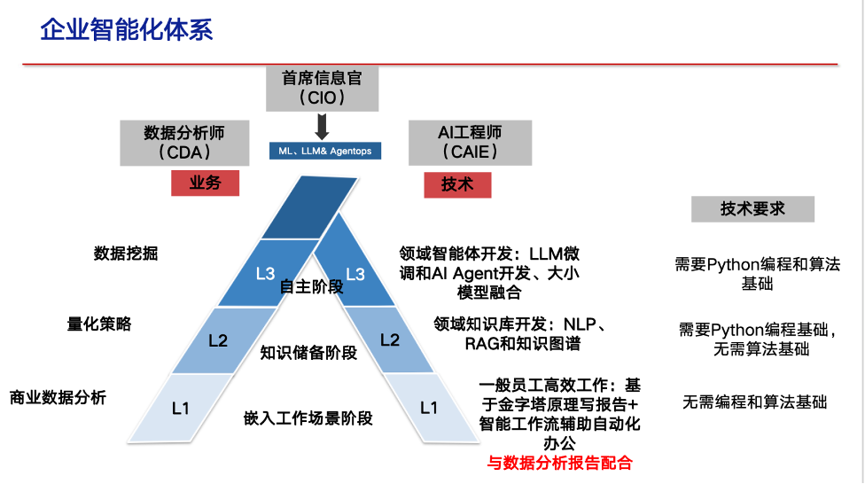 CAIE(賽一)認證 課程體系明確將大模型技術和企業(yè)級應用作為考核重點,這與當前AI在企業(yè)內部應用最快、影響力最大的趨勢完全吻合。