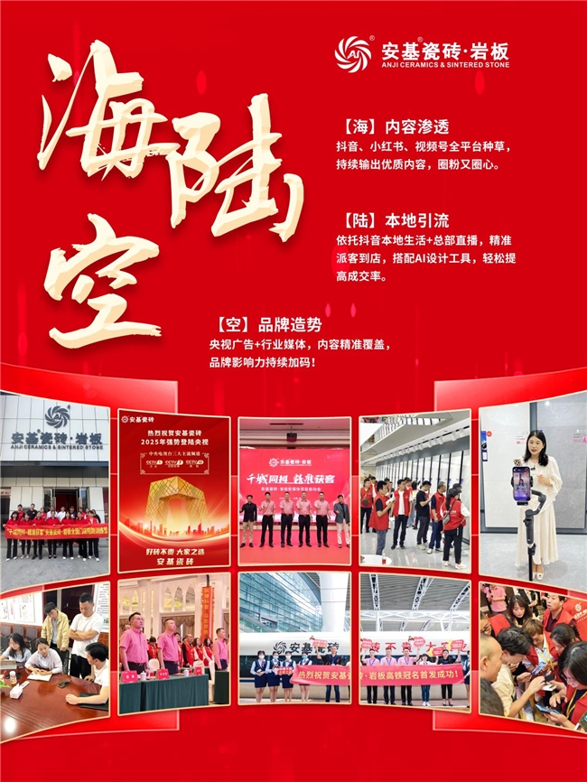 總結(jié)來說,找到一個好品牌就是找到微利時代的破局之道!從產(chǎn)品彈藥、宣傳火力,到銷售武器和人員培訓,全方位支撐你在前線打勝仗。你只管放心開拓市場,剩下的支持,交給品牌。安基瓷磚·巖板,愿意做那個給你好產(chǎn)品、好工具、好方法的伙伴。我們一起,把這條轉(zhuǎn)型的路,走穩(wěn),走通。
