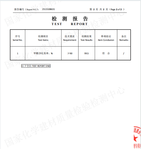 除醛率: 對(duì)空氣中游離甲醛的分解效率可達(dá)92%以上。