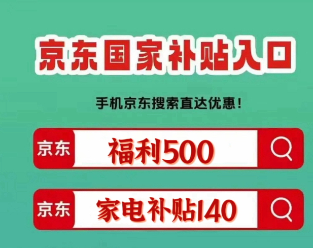 京東 APP 首頁搜索框輸入【福利500】直接進入主會場 或搜索【家電補貼140】【福利600】【福利900】進入國補會場