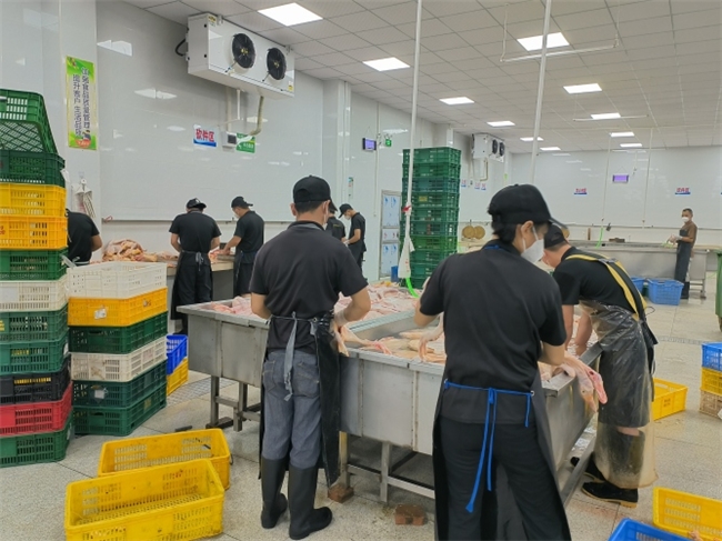 標準化車間:活禽屠宰加工環(huán)節(jié),嚴格遵循國家標準,采用現(xiàn)代化設(shè)備,確保衛(wèi)生環(huán)境與操作規(guī)范,杜絕交叉污染。